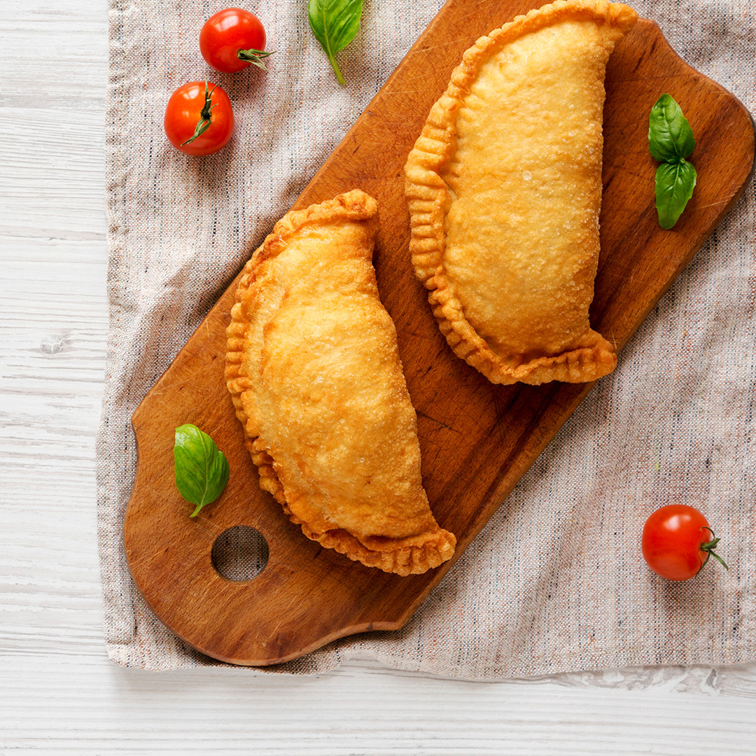 Typical Apulian fried turnovers filled with mozzarella and tomato sauce.