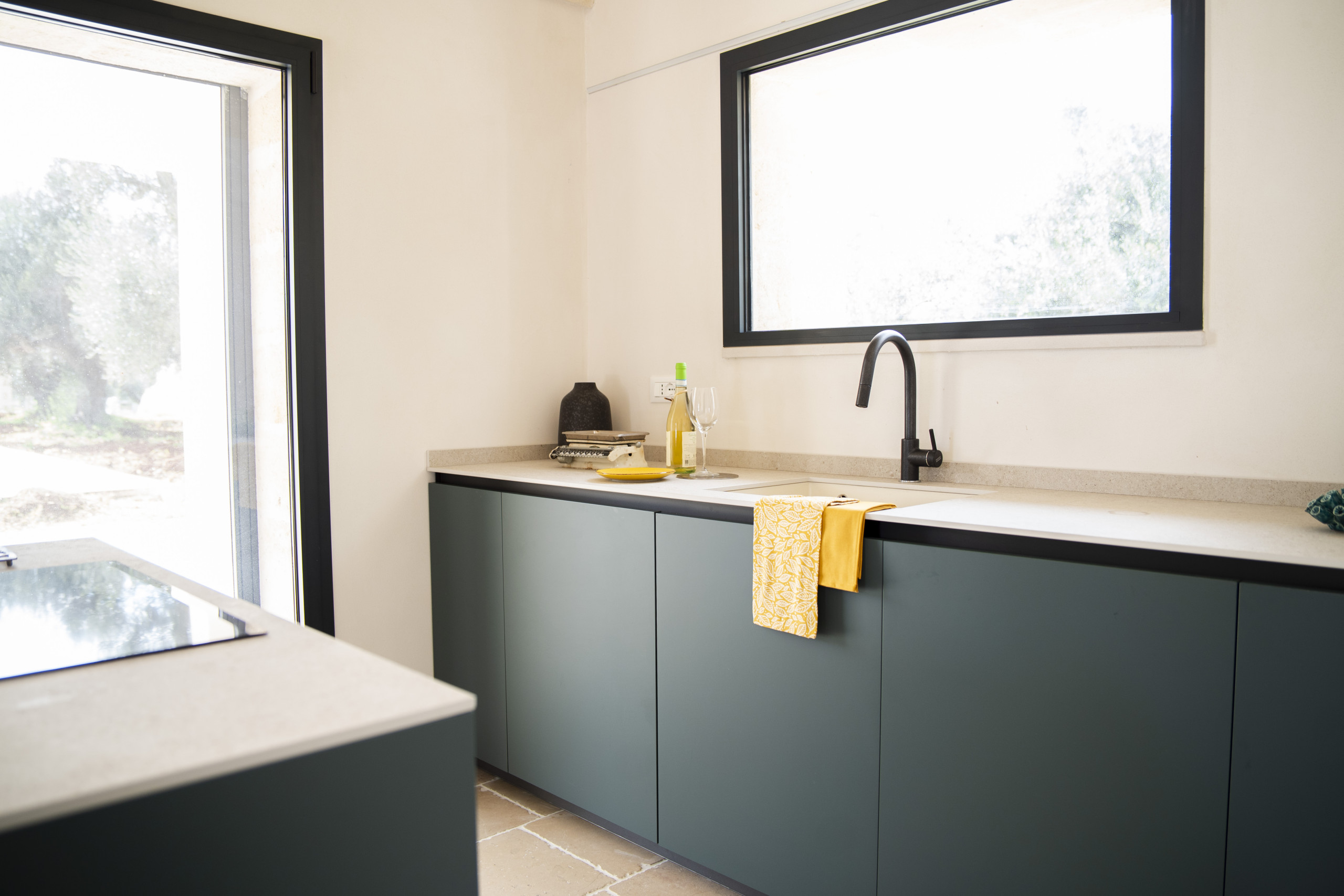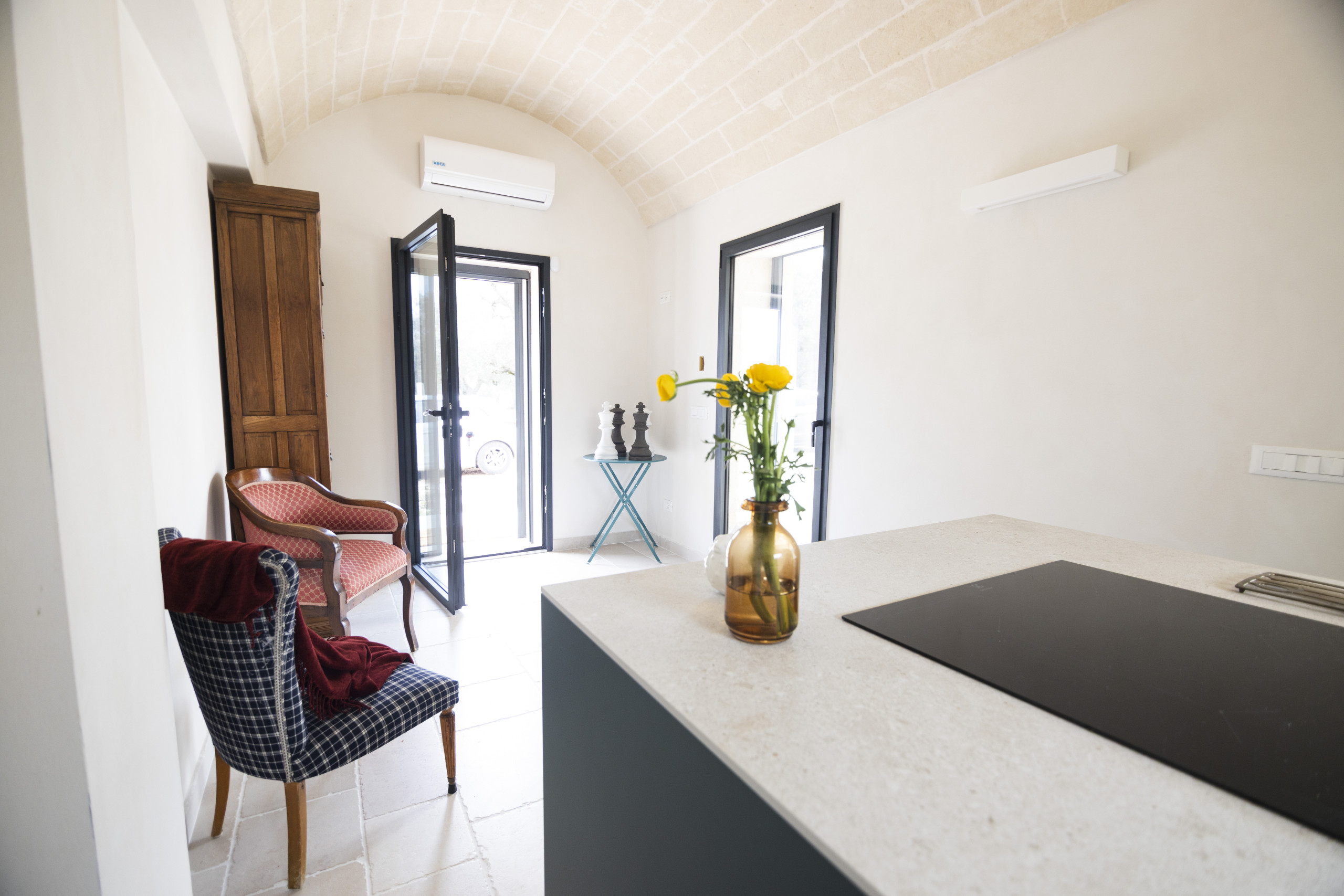 The property consists of a main body with three bedrooms, each with a private bathroom, a welcoming open-plan kitchen, and a veranda ideal for moments of relaxation. Separately, another independent trullo offers two sleeping places and a bathroom, perfect for ensuring privacy for couples or small family units.