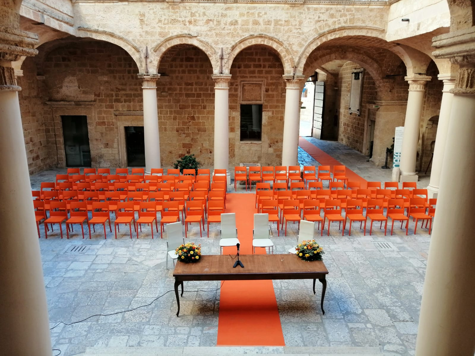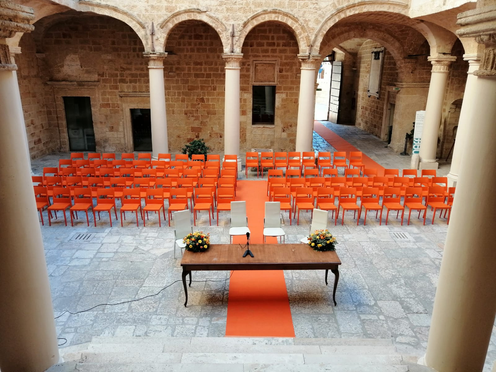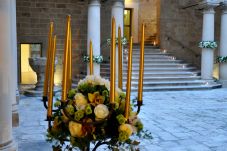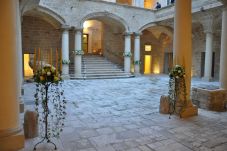 El Atrio Histórico, elegante y luminoso, permite celebrar la ceremonia al aire libre, rodeados de muros y arcos que evocan la vida en la corte. Un elegante patio abierto refleja la armonía arquitectónica y la dignidad de las antiguas residencias nobiliarias. En época histórica era el corazón del castillo, lugar de acogida y encuentro, donde se celebraban fiestas y momentos significativos de la vida social. Hoy conserva su magia y ofrece un marco escénico y luminoso para ceremonias y celebraciones al aire libre.