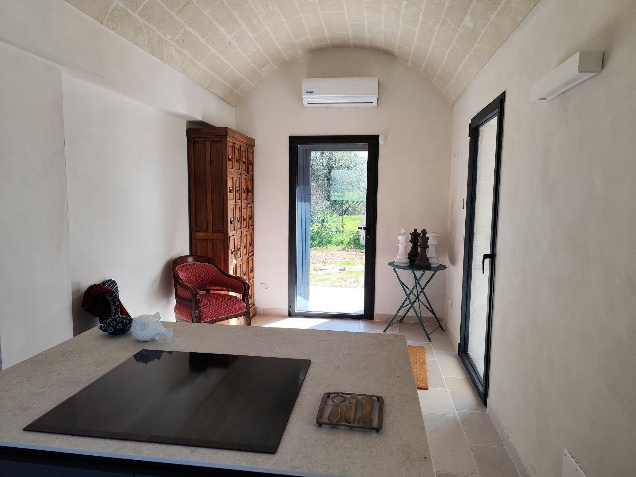Inmerso en la tranquilidad de la campiña pugliesa, este trullo de construcción antiquísima, finamente restaurado en mayo de 2025, conserva el encanto de sus orígenes ofreciendo al mismo tiempo todas las comodidades modernas. Cada detalle ha sido cuidado con atención para mantener el alma auténtica de la estructura, utilizando materiales de calidad y respetando las líneas arquitectónicas tradicionales.